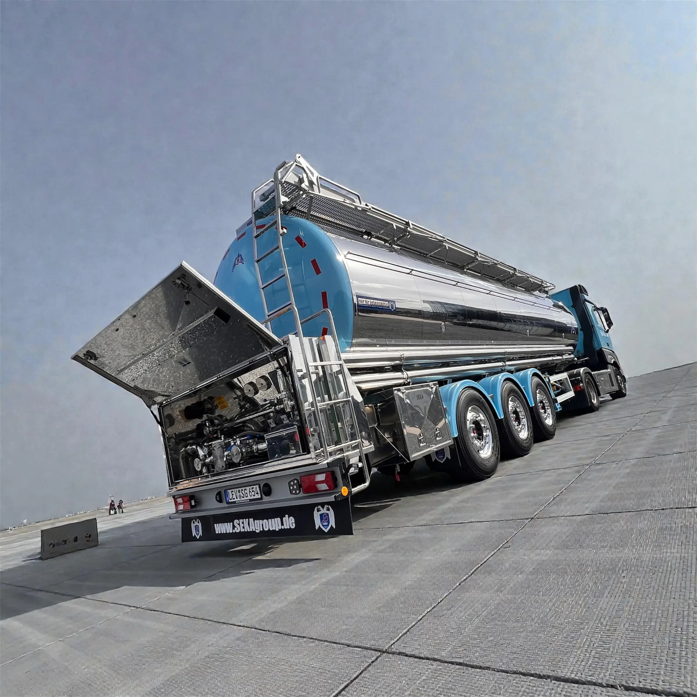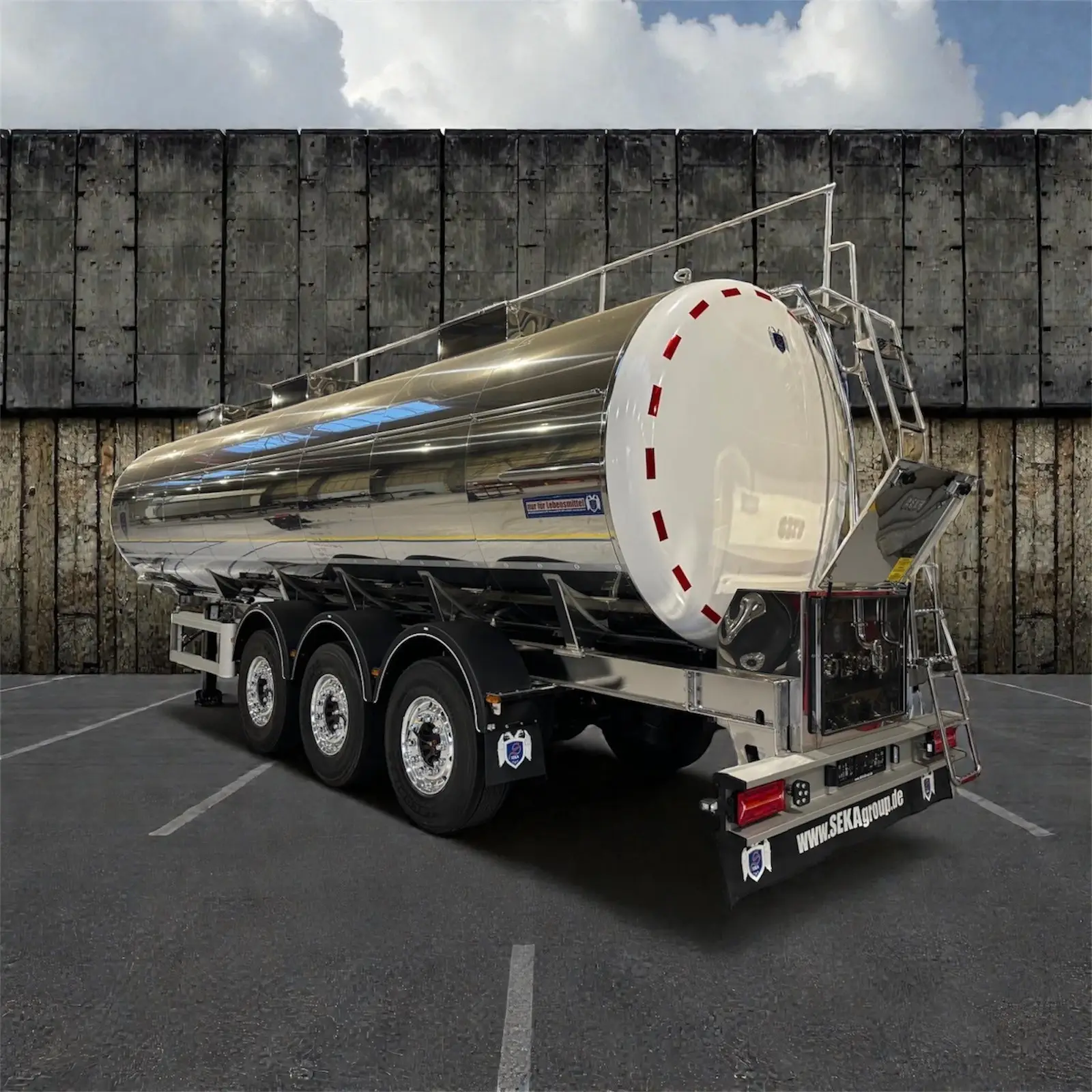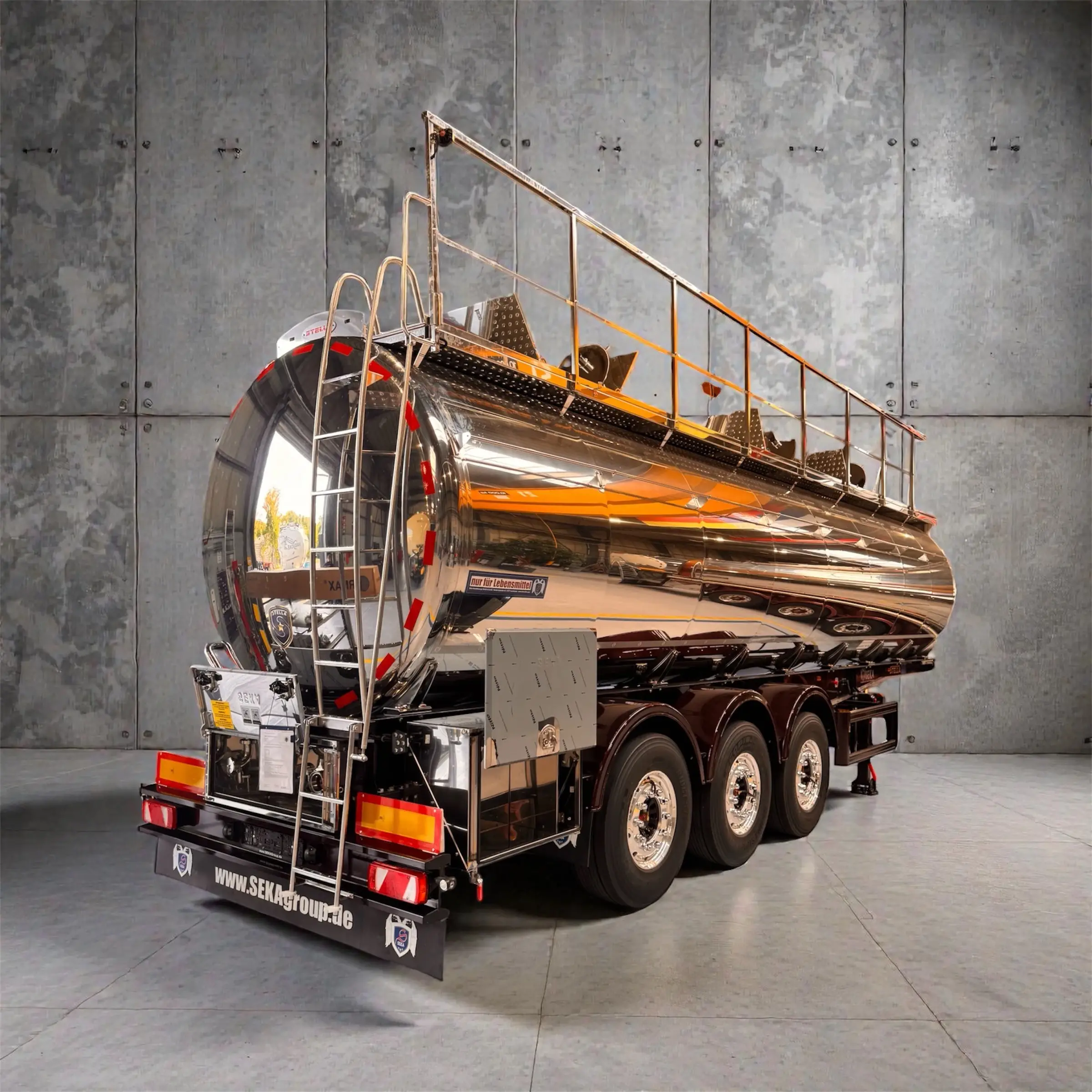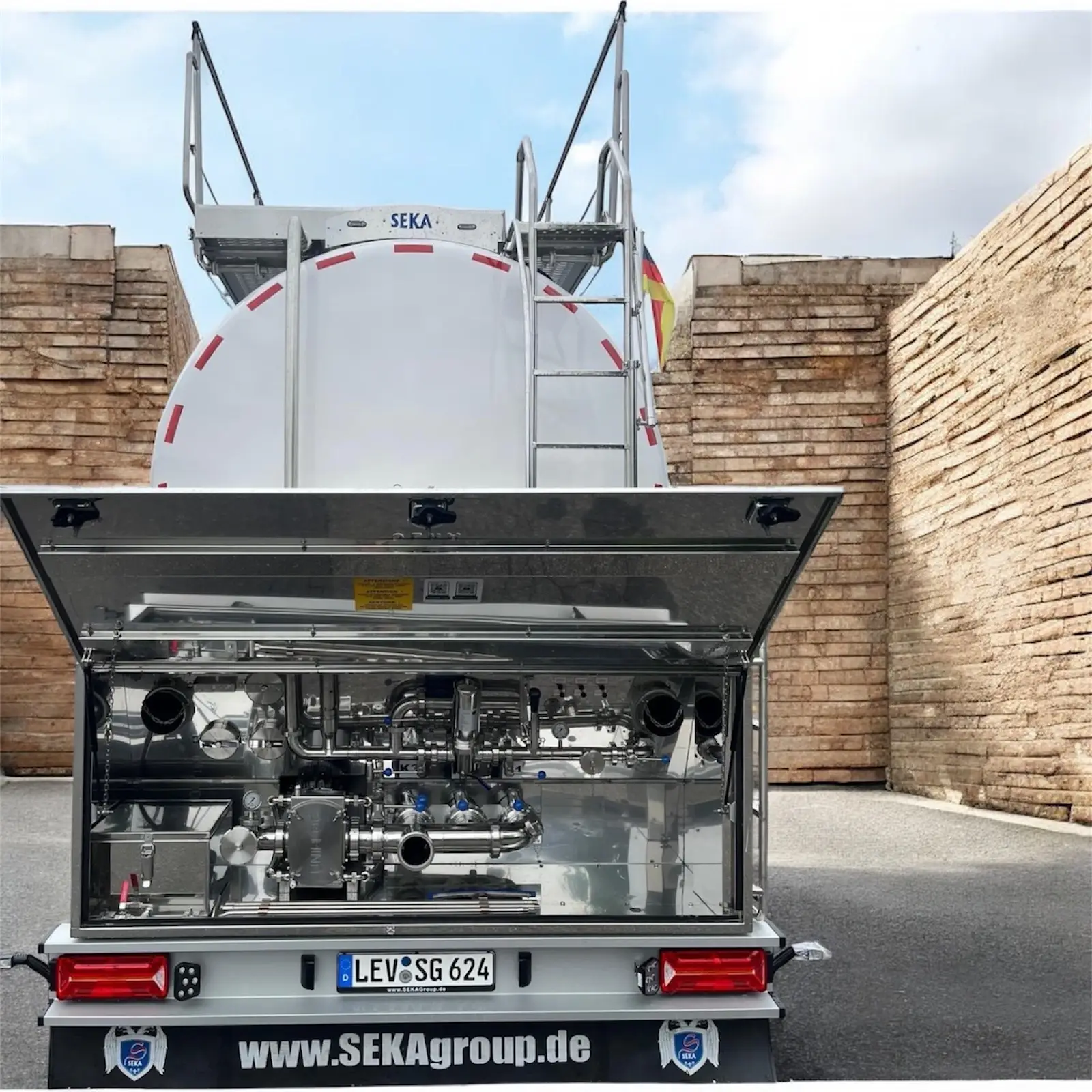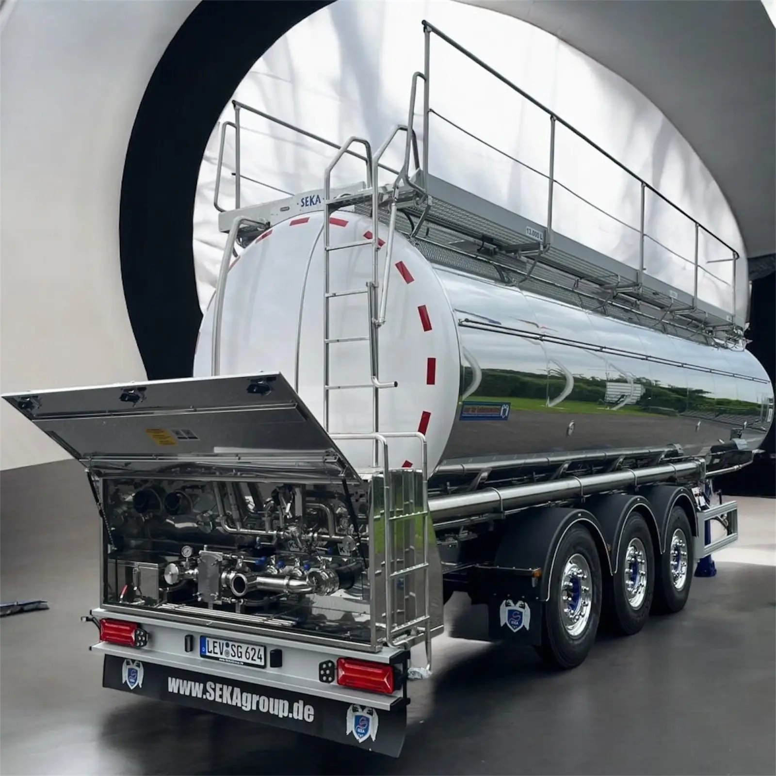 Unsere Satteltanks sind speziell für den Transport von flüssigen Lebensmitteln konzipiert und bieten eine sichere sowie effiziente Lösung.