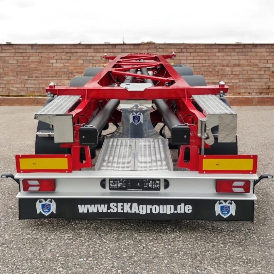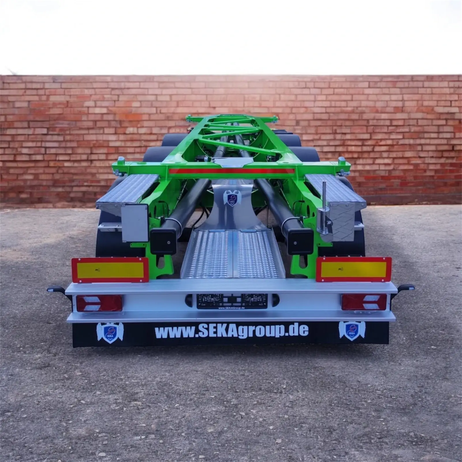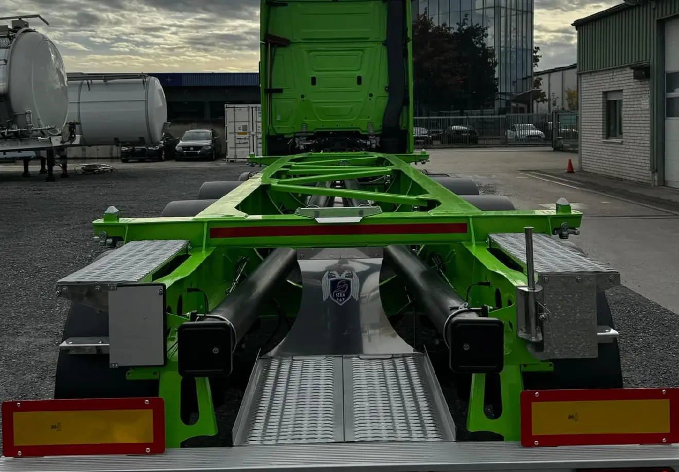 Die Chassis sind für Tankcontainer mit 4 x Containerverriegelung für Tankcontainer 20“ Mittig geeignet oder WAB 7,15m / 7,45m / 7,82m und gewährleisten einen sicheren und effizienten Transport von verschiedenen flüssigen Gütern.