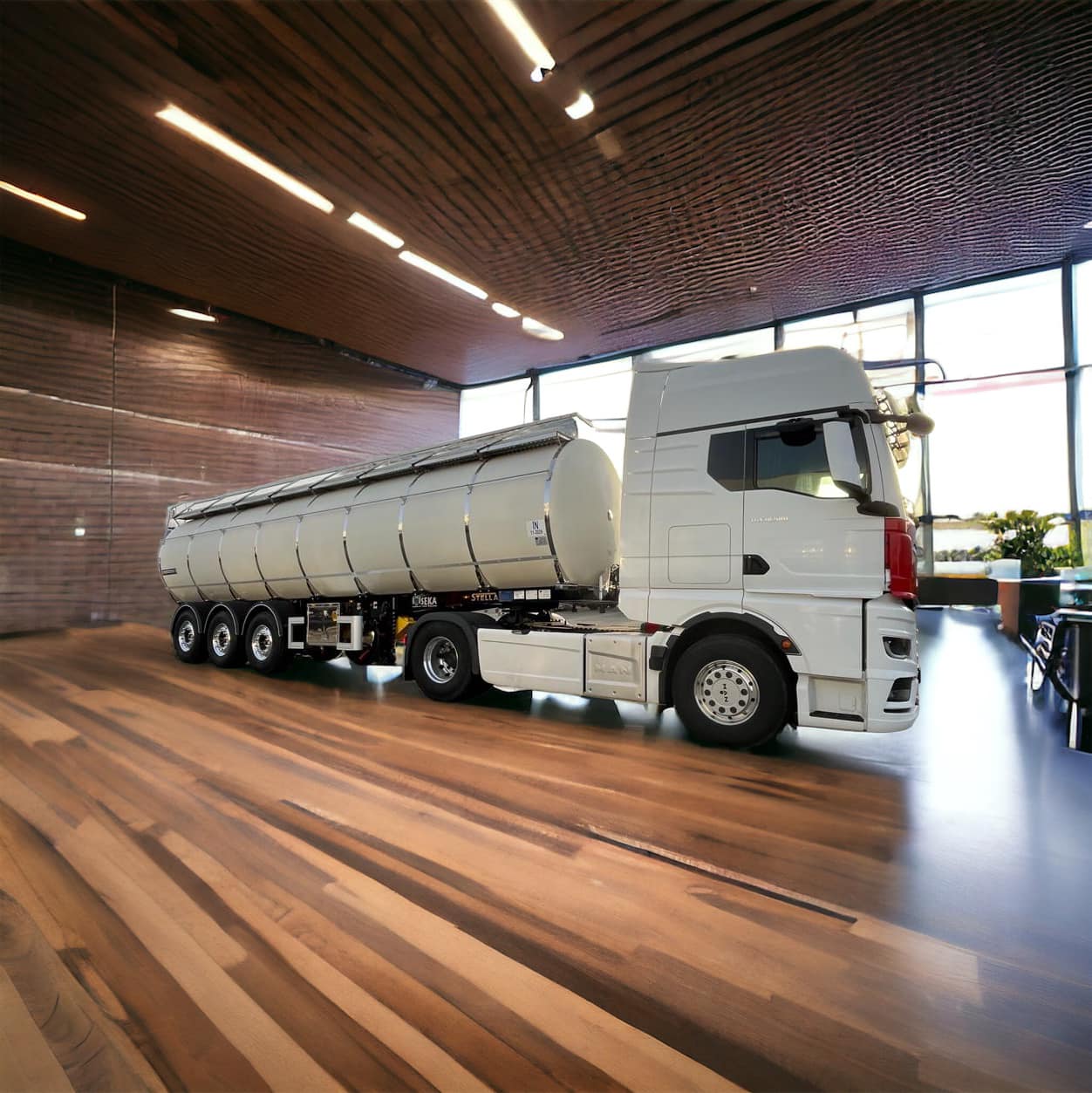 Im Showroom können Kunden, Fahrer, Disponenten und Servicepartner unsere Satteltanks, Trailer und Nutzfahrzeuge im unverbauten Zustand erleben.